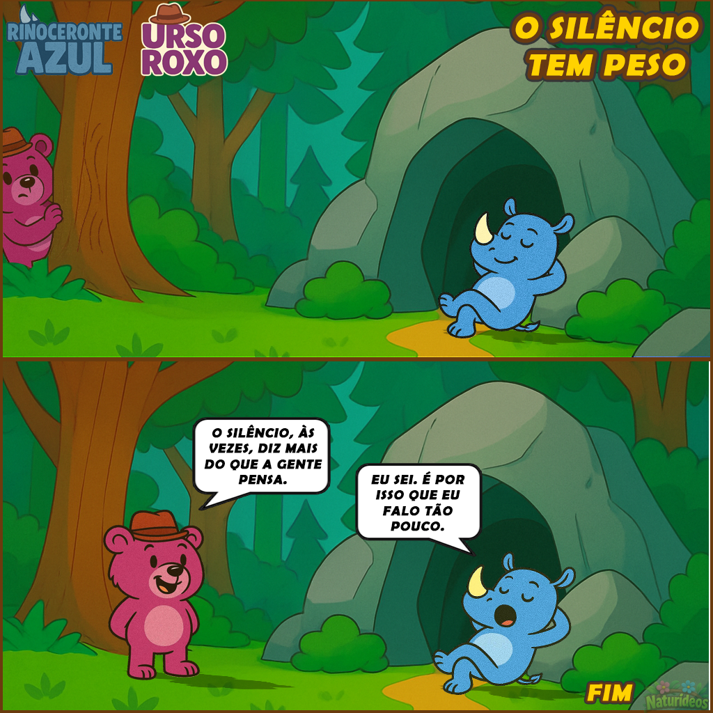 O Urso, sempre sábio e calmo, compartilha uma pequena reflexão sobre como o silêncio pode dizer muito — às vezes até mais do que palavras.
