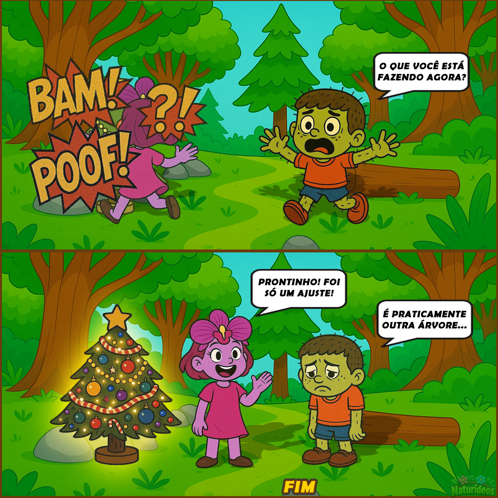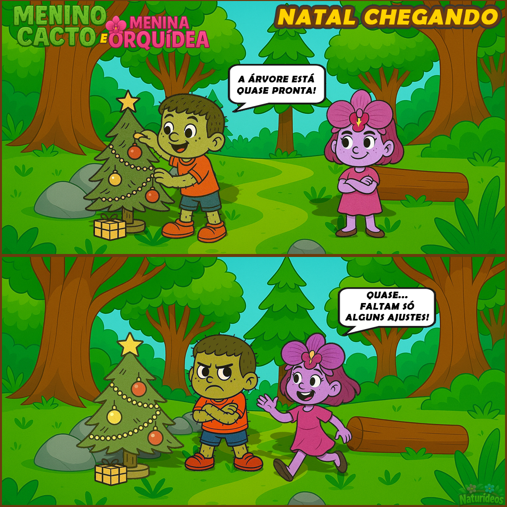 A Menina Orquídea leva o espírito natalino MUITO a sério. O Menino Cacto achou que tinha terminado, mas mal sabia ele que a decoração estava só começando…
