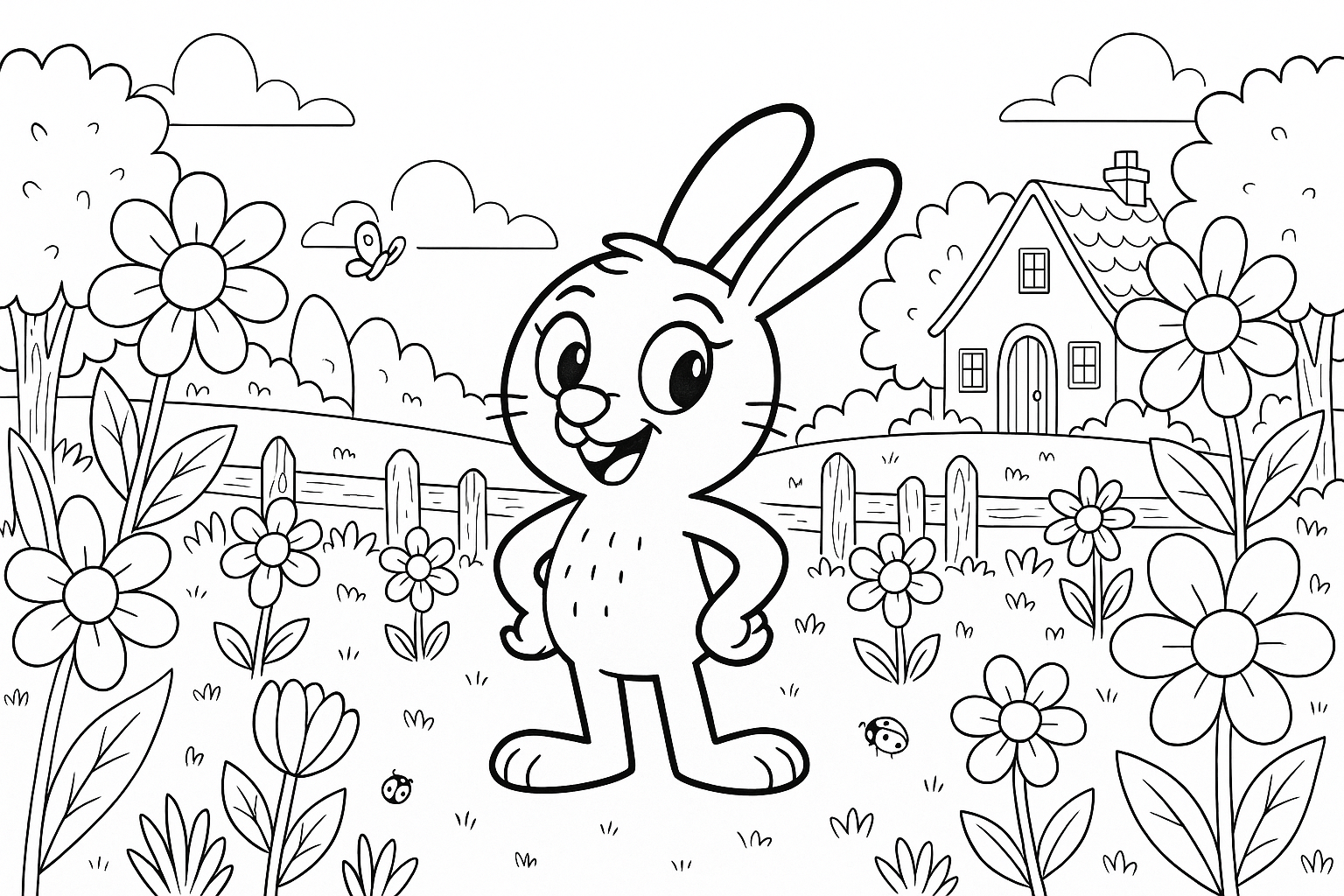 BAIXAR – Coelha Amarela no Jardim – A Coelha Amarela adora correr entre flores coloridas! Como será o jardim dela pintado por você?